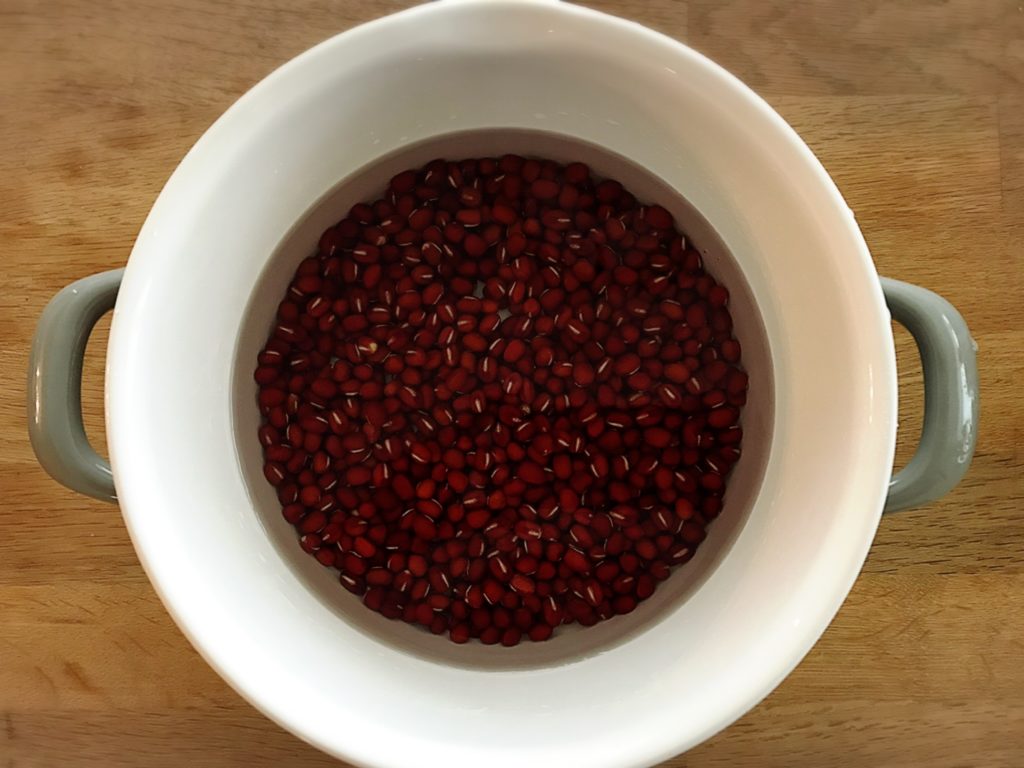 ワンちゃんにあげた後は、煮た小豆に砂糖を入れれば、