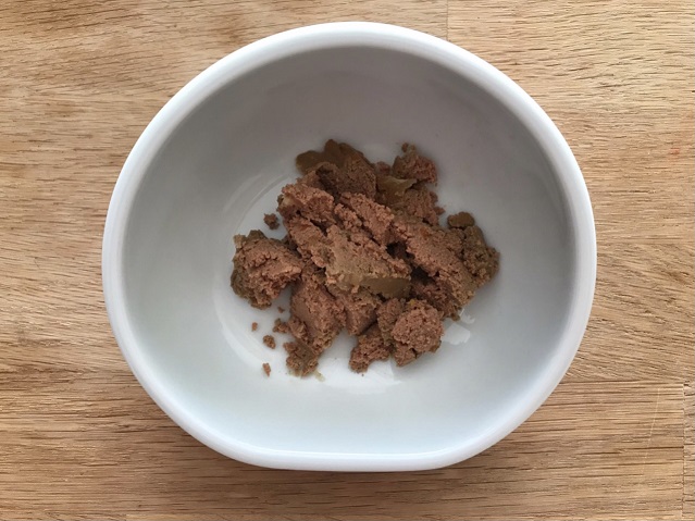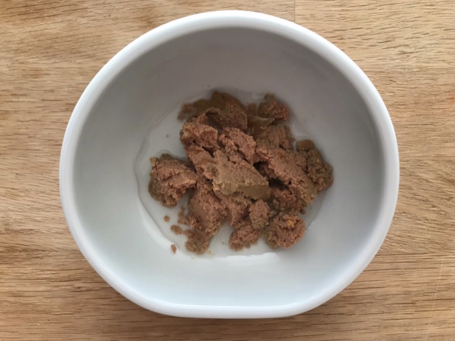 【3】器にプラチナム ウエットフード (フィッシュ+チキン)を盛り付ける。