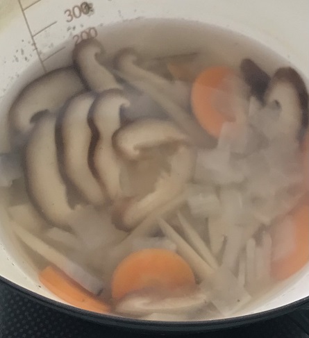 【2】昆布水でカットした野菜を食べやすい硬さに煮ていきます。
