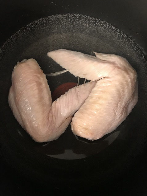 【1】鍋に手羽先と水を加え茹でる。沸騰したら火を止め中までしっかり火をいれる。