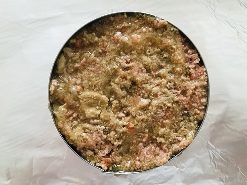 【1】プラチナムウエットフード(ターキー+サーモン)を丸い型に詰める。