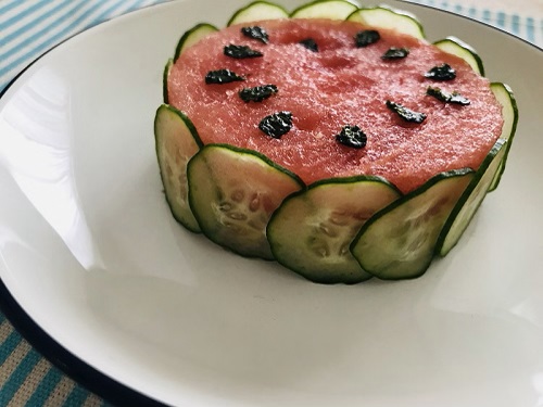 きゅうりのグリーンとスイカの赤色、2色のコントラストが
