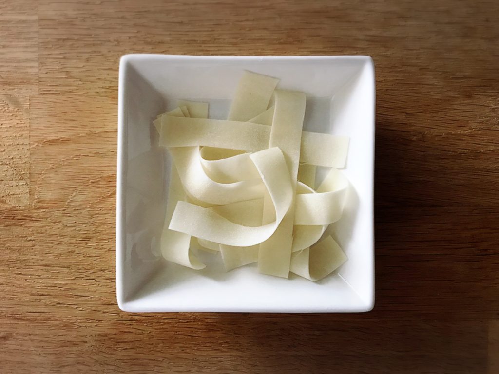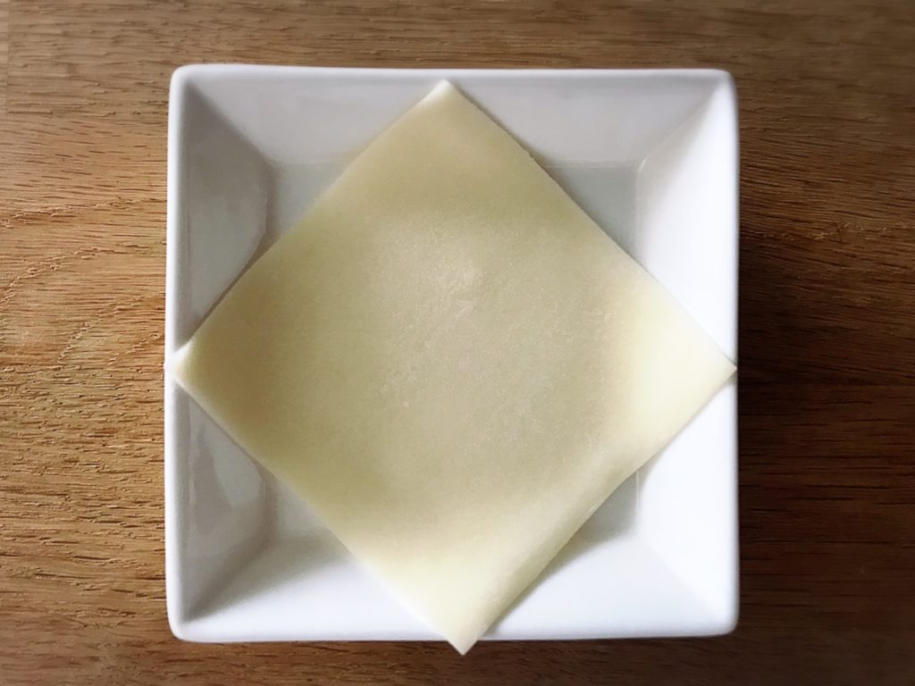 【3】ワンタンの皮をカットした後、タテ、ヨコと重ねオーブンで2~3分焼く