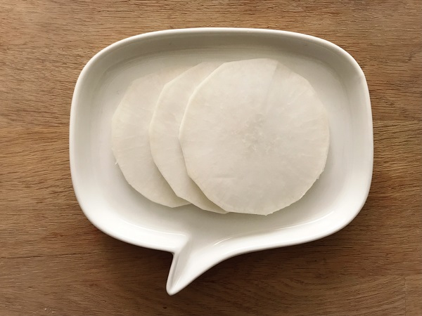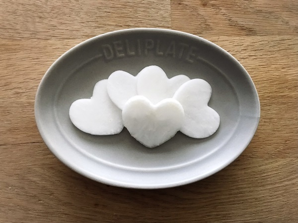 【2】かぶを2~3mmにスライスしてからハート型に型抜きをし、お好みの方法でやわらかくする