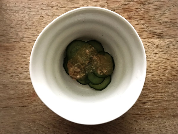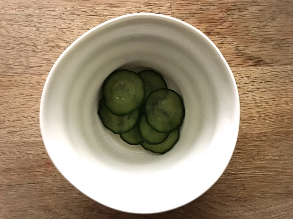 【3】きゅうりは薄く輪切りにし、お好みの方法でやわらかくする