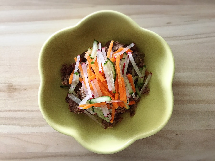 【3】【1】に刻んだ野菜を盛り付けたら完成!