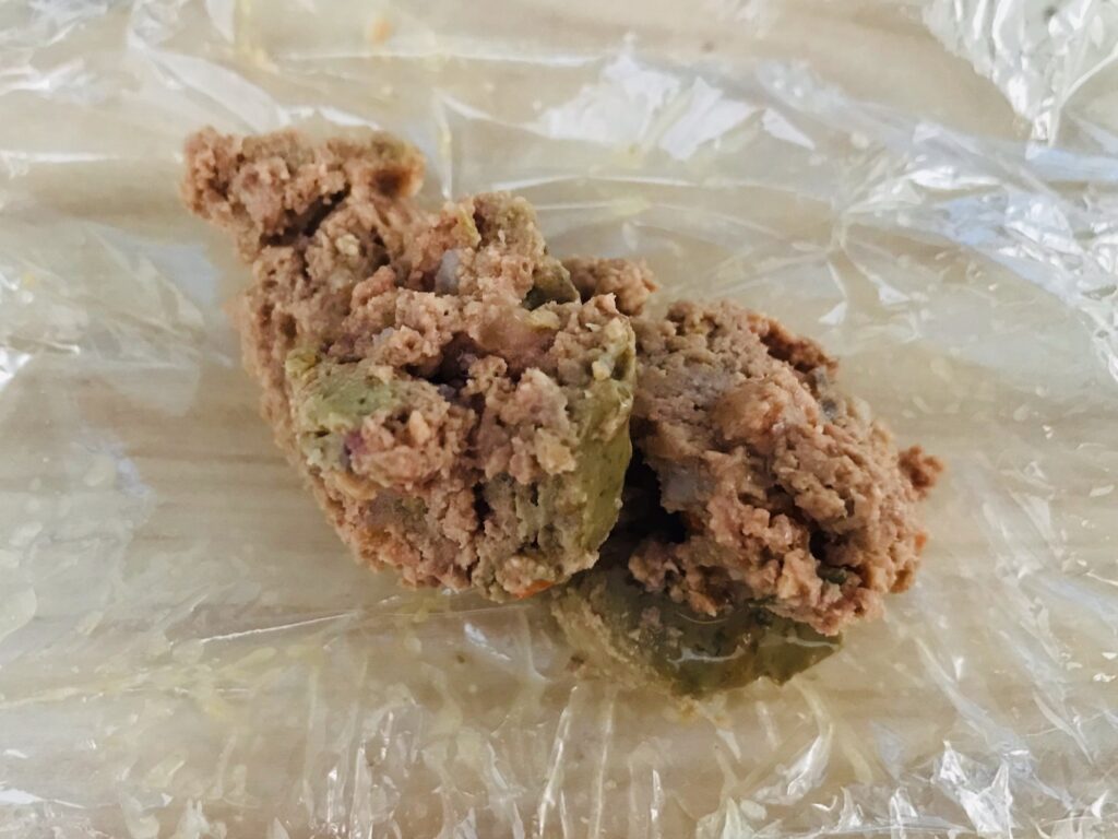 【1】プラチナム ナチュラル ドッグフード (ビーフ+チキン)をほぐしてラップで丸く丸めて冷蔵庫で冷やす