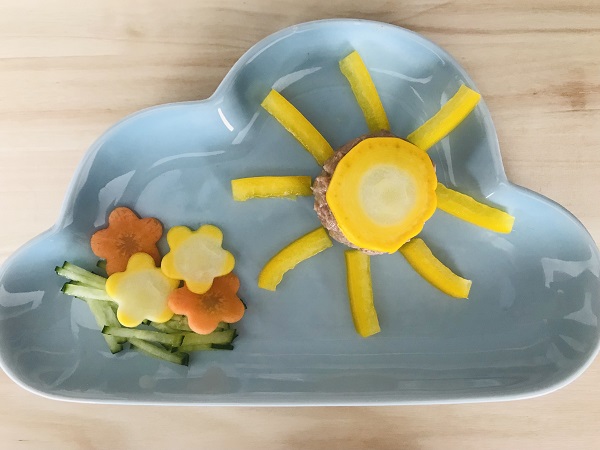 【4】【2】で用意した野菜を水切りし、太陽をイメージして飾りつけしたら完成!