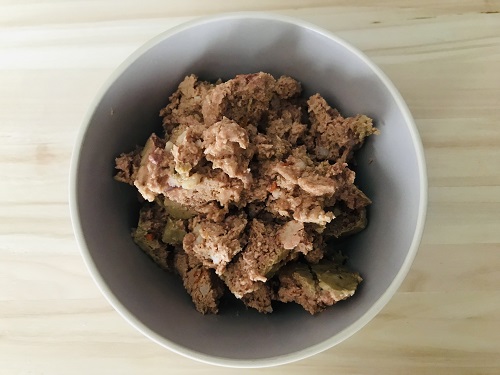 【2】プラチナム ウエットフード (チキン)を 軽くほぐして器に盛る
