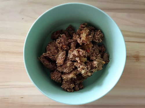 【1】プラチナム ナチュラル ドッグフード (ターキー+サーモン)を皿に盛る