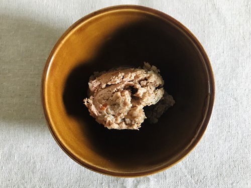 【3】プラチナム ナチュラル ドッグフード (ビーフ+チキン)を軽くほぐして皿に盛る