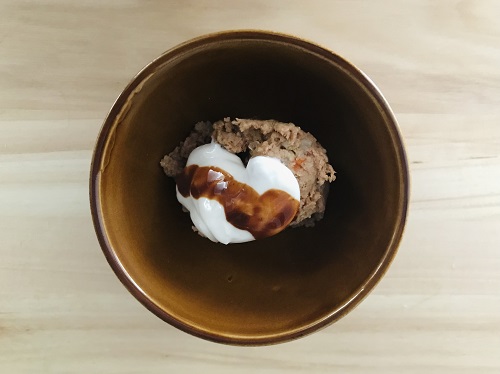 ●このメニューは小型犬・体重5kgの1食分を想定し、プラチナム ウエットフード150gを使用しています。ワンちゃんの大きさによって量などは適宜調節してください。(目安量)