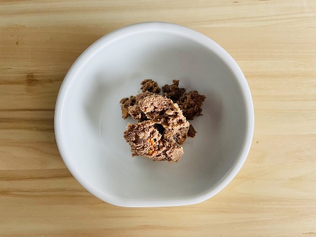 【1】プラチナム ウエットフード(フィッシュ+チキン)を軽くほぐしておく