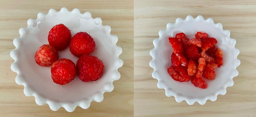 【2】ラズベリーを刻み好みの方法で煮てソースにする