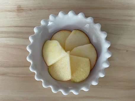 【4】りんごをスライスする。好みの方法で柔らかくし粗熱をとる
