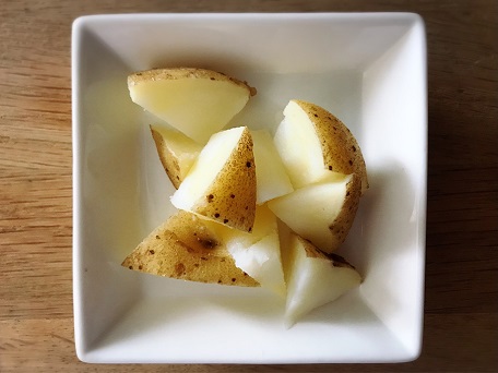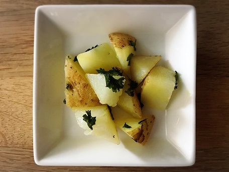 【2】じゃがいもを食べやすい大きさに切ったら、好みの方法でやわらかくする。オリーブオイルを少量たらし、トースターで焼いた後、パセリを加えて余熱で和える
