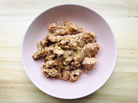 【1】プラチナム ウエットフード(フィッシュ+チキン)を軽くほぐして器にもる